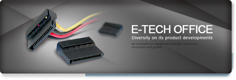 E-Tech Office International Corporation supplies top-quality components throughout the world for many applications, from cellular phone, computer peripherals to other 3C products. The main products of E-Tech Office include computer and telecommunication connectors and cable assemblies, die-casting, precision stamping, plastic and rubber injection parts, and other electronic devices and components....